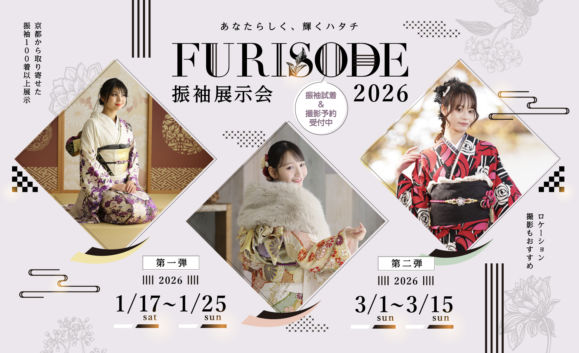 振袖選びは今!振袖展示会の第二弾を3月1日(土)より開催します!